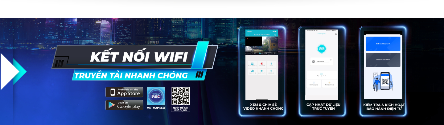Vietmap KC01 còn trang bị công nghệ chuẩn hình ảnh H.265 kết hợp truyền dữ liệu không dây giúp việc xem lại, trích xuất video nhanh chóng trên các thiết bị hệ điều hành Android, IOS thông qua ứng dụng VIETMAP REC
