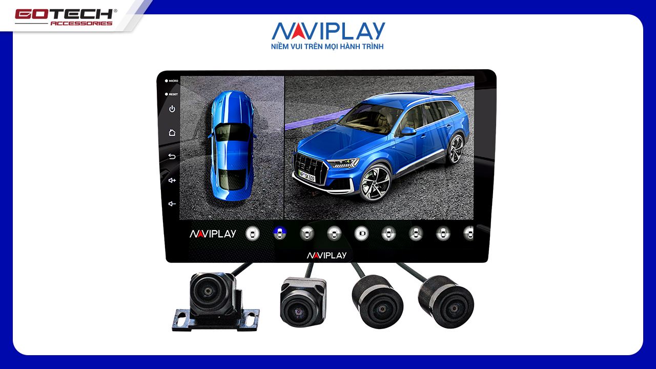 Tính năng nổi bật và khác biệt đầu tiên của Màn hình Android ô tô Naviplay N360 Lite là khả năng hỗ trợ quan sát toàn cảnh khi lái xe. Màn hình liền camera 360° NAVIPLAY có 4 mắt camera giúp ghi hình đầy đủ các góc xung quanh xe. Nhờ vậy, chủ xe có thể nhìn rõ tất cả điểm mù, vật cản hay chướng ngại vật, lái xe an toàn hơn. Mắt Camera Sony 225 cho chất lượng hiển thị sắc nét bất kể ban ngày hay đêm, mưa bão hay bụi bẩn.