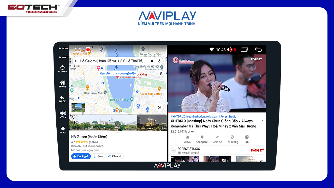 Những chiếc màn hình zin hiện nay chỉ mở được một ứng dụng. Tuy nhiên, với Màn hình Android ô tô Naviplay N360 Lite, chủ xe có thể mở cùng lúc 2 ứng dụng khác nhau, mang đến trải nghiệm hoàn hảo hơn. Tính năng này đặc biệt hữu ích khi trên xe có con nhỏ.