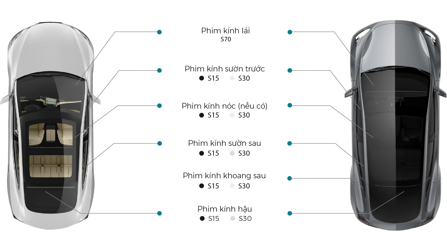 Giảm thiểu ánh sáng chói lóa, thêm tính bảo mật, kín đáo – có sẵn trong một màu than mềm giúp tăng cường sự sang trọng của xe trong và ngoài với độ phản gương 5% đến 7%, gói phim mới này tăng thêm sự riêng tư cho hành khách và đồ vật có giá trị trong khi giảm độ chói tới 94%.