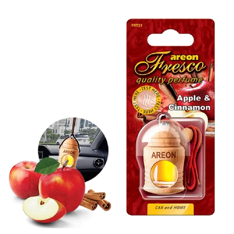 Areon Fresco Apple & Cinnamon – Tinh dầu treo xe Areon hương táo quế được nhập khẩu từ Bulgaria, Châu Âu. Đây là sự kết hợp thú vị độc nhất vô nhị giữa hương táo thanh mát cùng hương quế ấm áp. Tinh dầu táo quế kết hợp có tác dụng thông kinh mạch, diệt khuẩn, chống nôn và giải độc cơ thể hiệu quả.