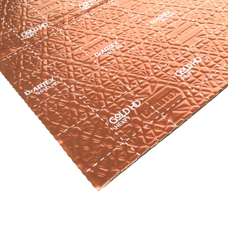 DrARTEX Gold HD là vật liệu cách âm chống ồn có cấu tạo 3 lớp, với bề mặt nhôm dày 0.1mm, không chứa các chất phụ gia để loại bỏ các mùi khó chịu, chống nước. Sản phẩm có độ bám dính tốt, không chỉ tăng tính đầm chắc cho kết cấu của xe, mà còn hạn chế được tình trạng ù tai, rung động khi xe chạy.